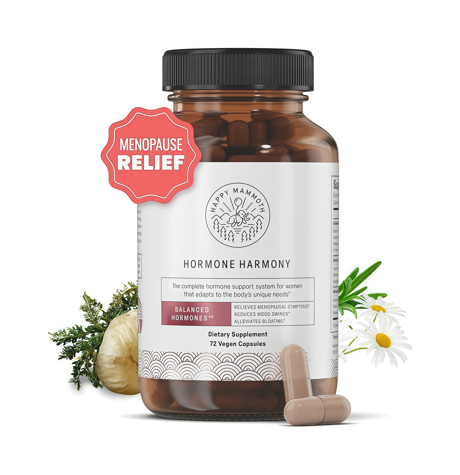 Contains a blend of plant extracts shown to relieve symptoms of Menopause, decrease symptoms of premenstrual tension, and support reproductive hormones.
